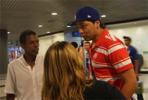 | Goleiro e elenco desembarcaram na tarde desta quinta-feira, no Recife |